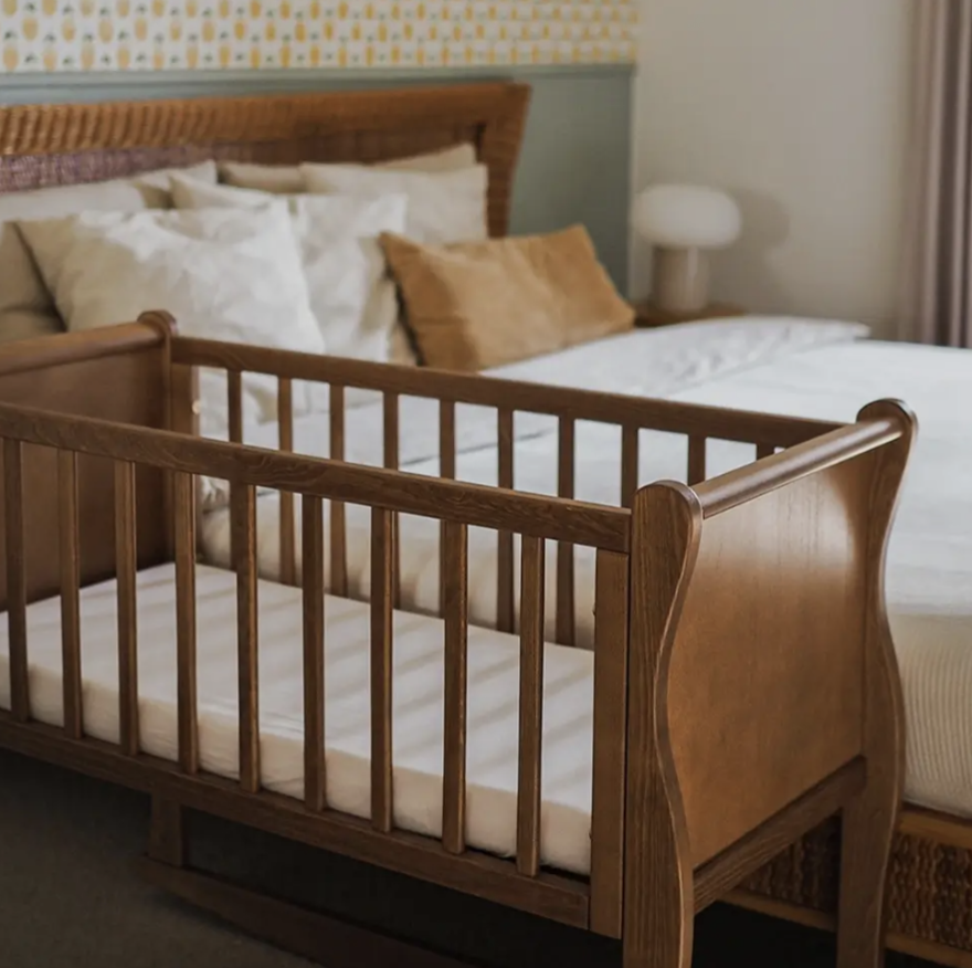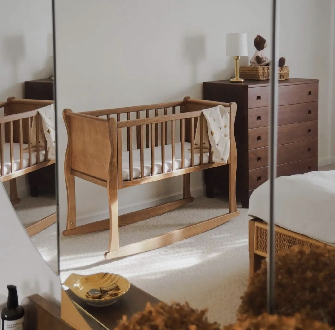 - Lichte vintage‑walnootafwerking die perfect aansluit bij moderne babykamers.