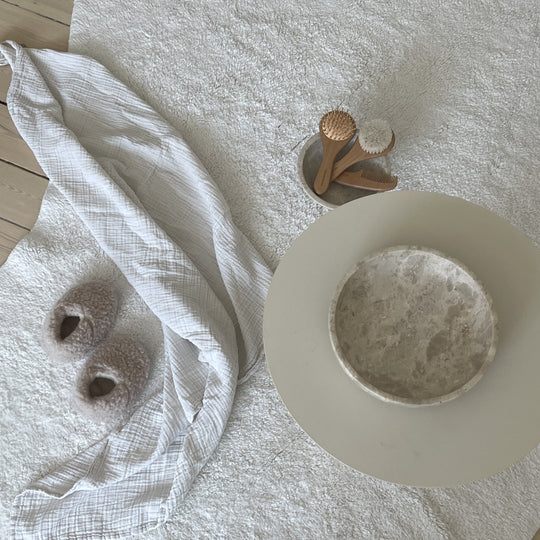 Et tæppe, der er lige så blødt, som det ser ud. Cloud Rug tilfører varme uden ståhej. Den vaskbare bomuldsvæv tåler hverdagens spild og leg, mens det bløde, konturerede design tilfører ro og moderne elegance — fra babyværelset til familiens stue.
