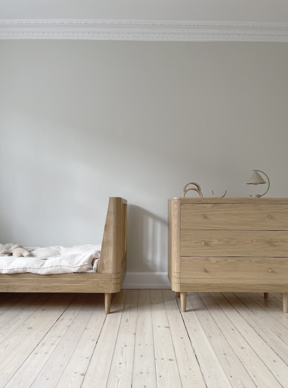 Från nyföddadagarna till de stora barnåren anpassar sig byrån efter familjens rytm. Föräldrar uppskattar den hållbara, arvsvärda eken, den generösa förvaringen och den enkla omvandlingen till skötbord med den tilläggstoppen. Den minimalistiska danska designen smälter in i vilket modernt hem som helst och blir en långsiktig favorit långt bortom barnrummet.