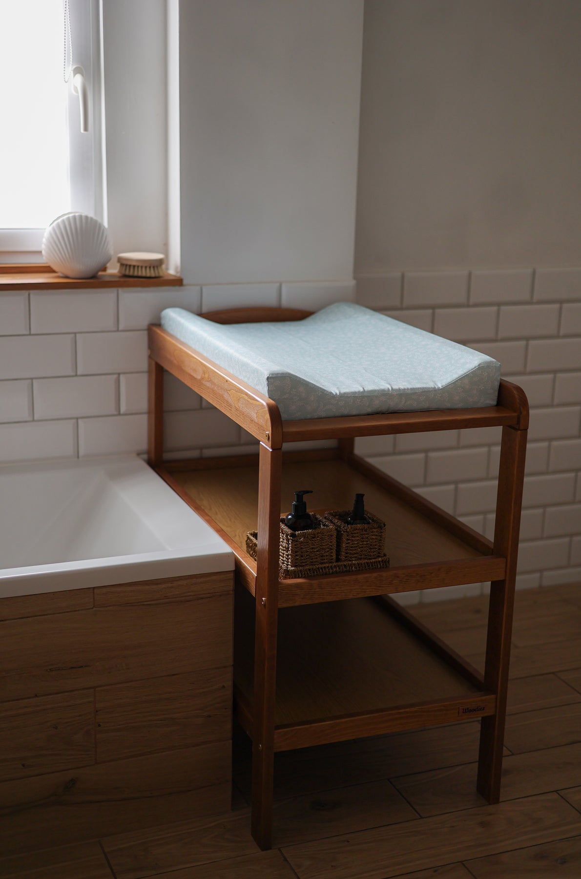 Woodies'ten bu masif çam bebek alt değiştirme masasıyla bebek odanıza huzurlu, nostaljik bir hava katın. Serbest duran ve Avrupa yapımı olan bu parça, sağlam stabilite ve kompakt tasarımıyla her alt değişimini kolaylaştırırken, bebek odası mobilyalarınızı zarif bir seviyeye taşır.